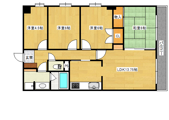・・・4LDK。。。広いです。壁紙や床のクッションフロアも新しくされています。新しい気持ちで、新しい生活をスタートさせていきたい方にはぴったりの物件ではないでしょうか?