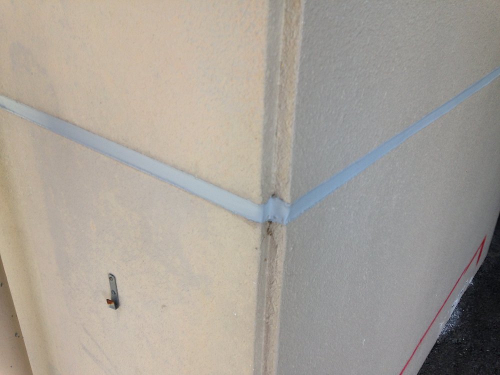 壁面の小さなひび割れには微弾性フィラーを擦り込み、大きめのひびはシーリング工事を行います。