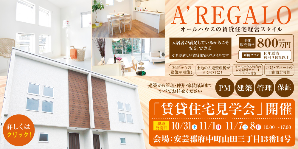 府中町山田で賃貸住宅~A'REGALO~の完成見学会の開催が決定しました!